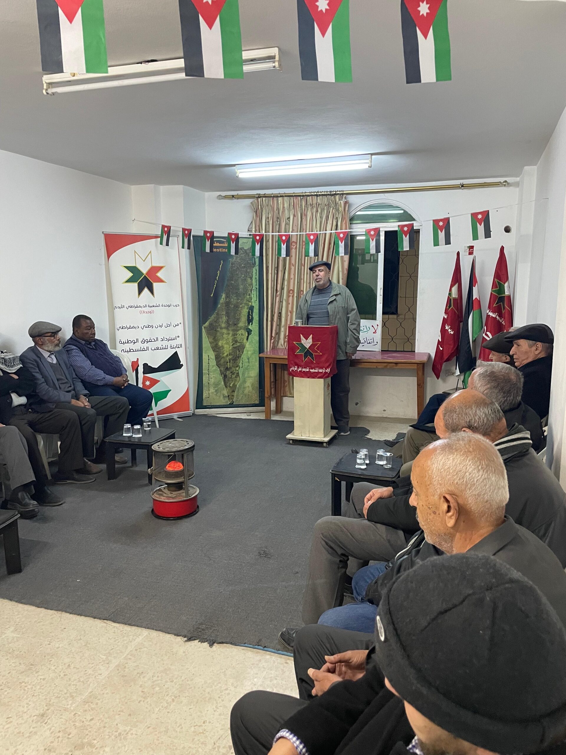 وقال الرفيق في كلمته ان الحزب يحمل مهمتين مترابطتين في الهم الاردني في النضال من أجل التغيير الديمقراطي بما يتطلب إلغاء كافة الاتفاقيات مع العدو ال$هيوني وتحضير الجبهة الداخلية لمواجهة التهديدات الصهيونية تجاه الأردن .