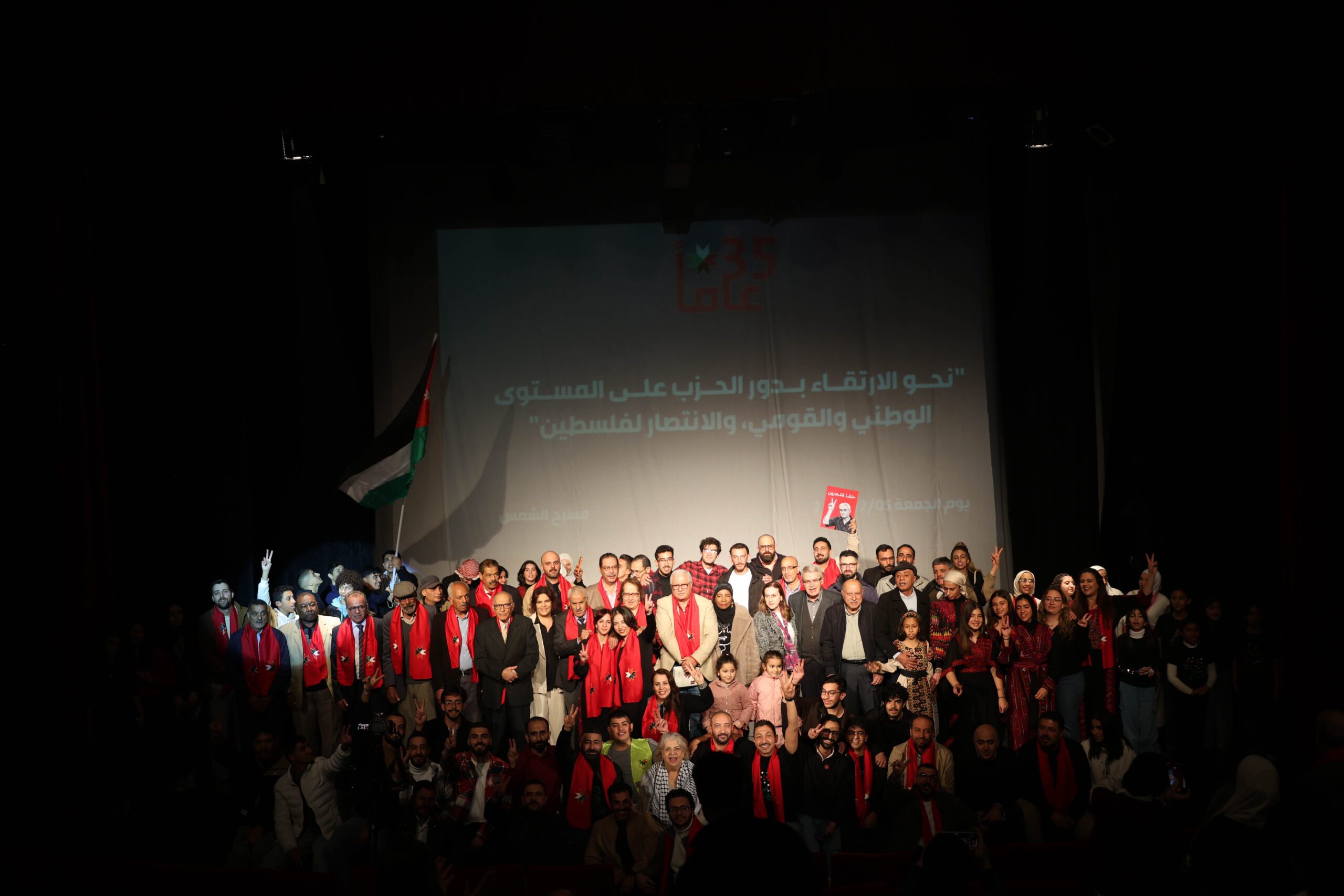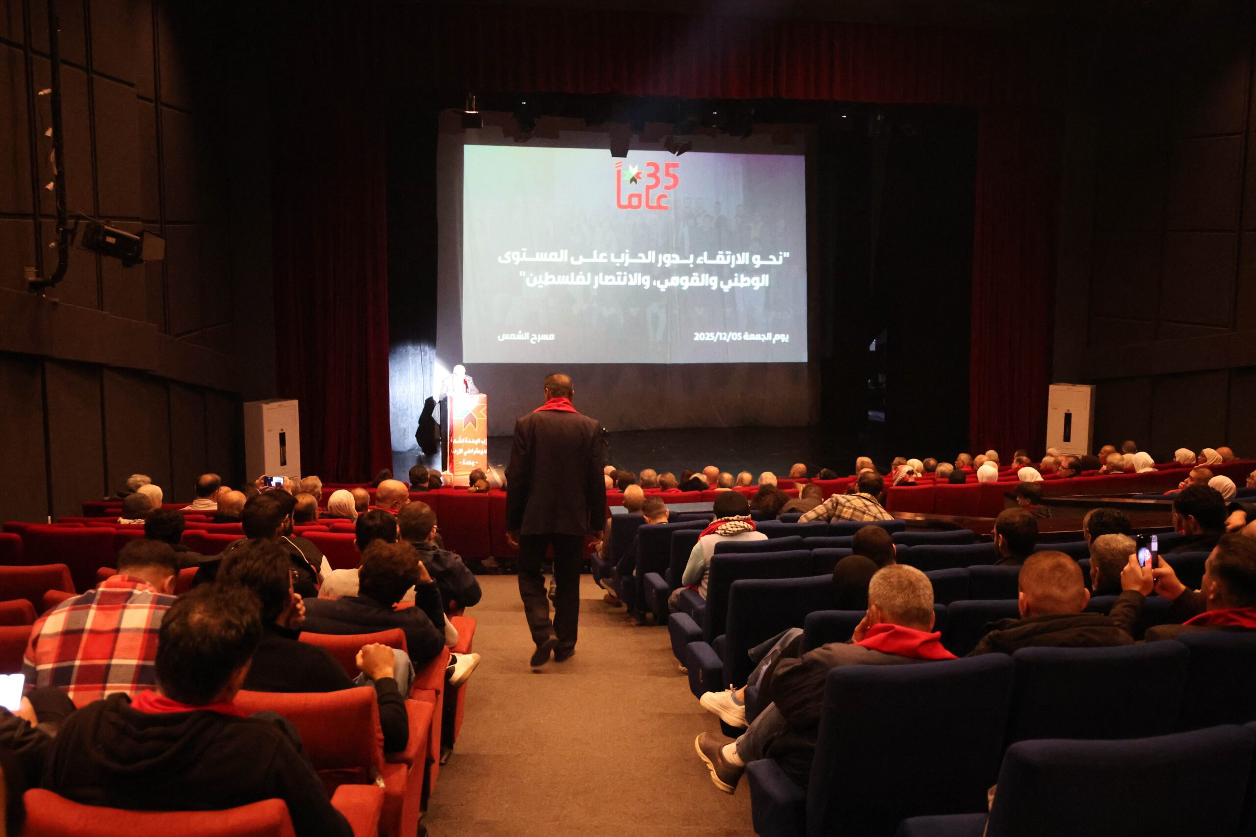 أحيا حزب الوحدة الشعبية الديمقراطي الأردني، مساء الجمعة الموافق 5 كانون الأول 2025، الذكرى الخامسة والثلاثين لانطلاقته، بمهرجان مركزي حاشد أقيم على مسرح الشمس في العاصمة عمان، تحت شعار “نحو الارتقاء بدور الحزب على المستوى الوطني والقومي، والانتصار لفلسطين”. وافتتحت فعاليات المهرجان، الذي حضره عدد من الأمناء العامين للأحزاب الوطنية وشخصيات نقابية وسياسية وعضويته الحزبية من مختلف المناطق والمراتب الحزبية وأصدقاء الحزب، بوقفة مع نشيد “موطني” أدته فرقة كورال “أجيال الوحدة”. تلا ذلك عرض فيلم توثيقي خاص استعرض الهيئات الحزبية والجماهيرية المختلفة، وسلط الضوء على أبرز إنجازات الحزب ومحطاته النضالية ودوره في الحركة الوطنية على مدار 35 عاماً من العمل الدؤوب.